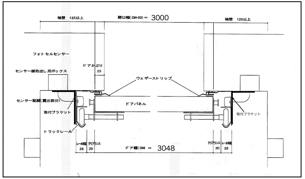 奥行きは同じくモーターを付ける場合、ガレージの上部の水平に4000mmが必要。