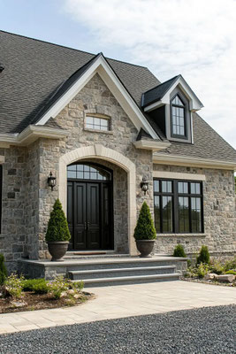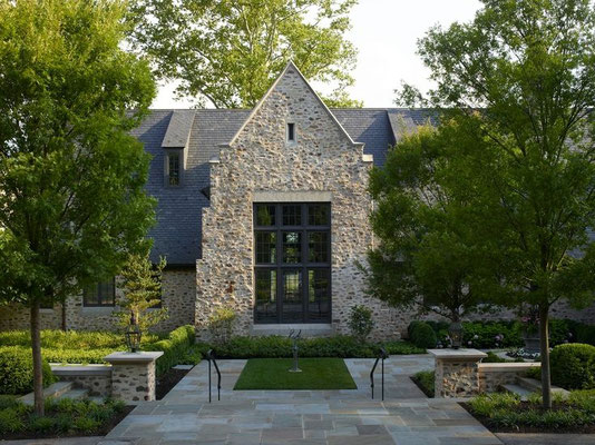 レンガや天然石の外壁、白いサッシ窓、シンメトリーな外観が上品で、年月を重ねるほどに味わいが増します。